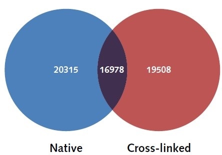 The identified peaks were mapped to their closest gene loci (+/-5000 bp distance to the TSS to find out which peaks relate to each gene), and the uniquely identified genes were compared between N and X-linked ChIP samples so as to determine the similarities in the H3K4me3 genome wide landscape. In the N-ChIP samples, 20315 uniquely mapped genes were associated with H3K4me3, while in the X-linked ChIP samples, 19508 unique gene loci were associated with H3K4me3, highlighting a 90% resemblance between samples, as shown in Figure 4.