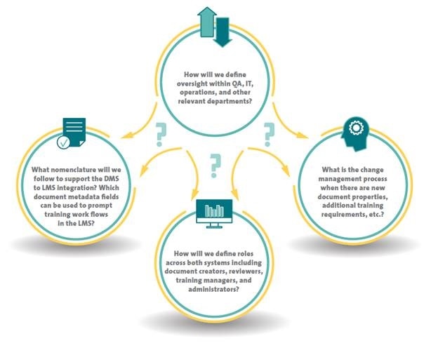 Defined rules are also required to establish learner groups and manage training. The DMS to LMS process needs feedback from stakeholders such as subject matter experts, documentation personnel, and department and training managers.