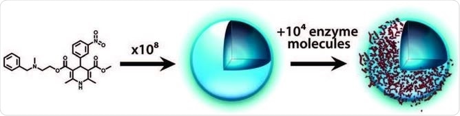 Process of promiscuous inhibition: compound aggregates into colloidal particles that then sequester enzyme on their surface. Coan and Shoichet 2008.