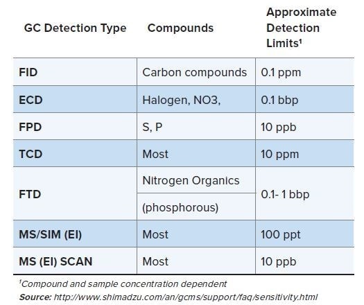 Table 2. General Sensitivity Overview-HPLC Detectors