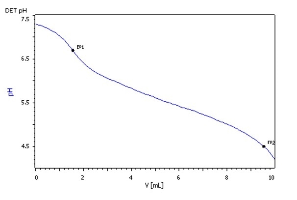 Approximately 80 mL of brine, seawater, or brackish water sample is taken in a beaker using a pipette. Employing the Unitrode, titration is then carried out using HCl with 0.1 mol/L concentration to achieve a pH-value of 3.0. Two endpoints, one at pH 8.1 and another at pH 4.5 are determined and used for the estimation.