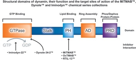 Dynamin Inhibitors Toolbox   Dynamin inhibitor kit from the MiTMAB™, Dynole™ and Iminodyn™ chemical series. View