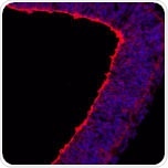 Mouse embryonic coronal cortical section stained with anti-N -cadherin (red) (ab76011).