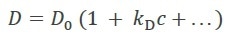 Dt is a function of concentration, c, as a result of non-specific protein-protein interactions mainly arising from hydrophobic and charged residues. Analyzing Dt vs. c results in the first-order diffusion interaction parameter kD (which should not be confused with the equilibrium dissociation constant Kd), as per equation 1: