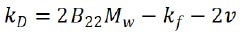 where B22 is the second osmotic virial coefficient, Mw indicates the molecular weight of the sample, kf signifies the first term in the expansion of friction coefficient, and v represents the specific volume.
