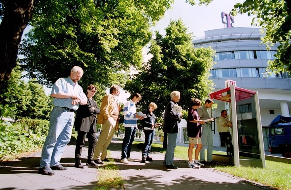 A long waiting queue in front of a phone booth exemplifies the challenges of centralized systems (left). Decentralization at epitome by having own personal pocket-size smartphone (right). Image Credit: istock