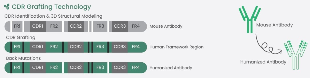 Figure 2. Complementarity-determining region (CDR) grafting technology developed by Sino Biological. Image Credit: Sino Biological Inc.