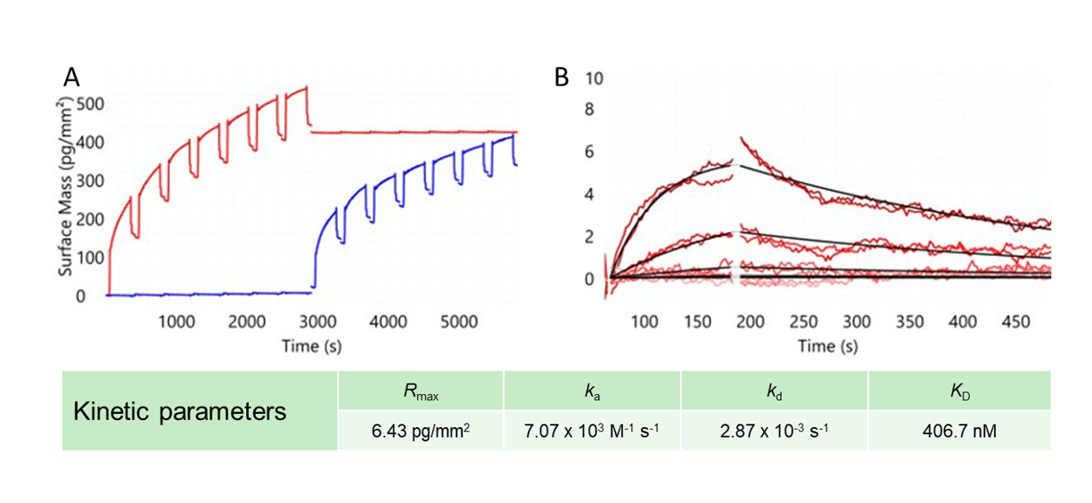 Grating-coupled interferometry (GCI) is a surface based, a label-free optical sensing technique used for real-time binding kinetic measurements.1 Typically, GCI is used to detect binding events between a target molecule and an analyte. When a protein immobilised on the sensor surface binds to an analyte, there is a light phase shift, which is read out interferometrically. The binding kinetics are analyzed by measuring these phase-shift signals in real time.
