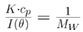 If reorganized for single angle analysis at 90° and solving for weight-averaged molecular weight, the equation changes to:
