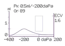 Other parameters should also be assessed alongside the test compliance curve. Examples of these include the maximum compliance curve values (air pressure in daPa and compliance value in ml), the curve’s width, also known as the gradient (in daPa) and the volume of the ear canal (measured in ml).