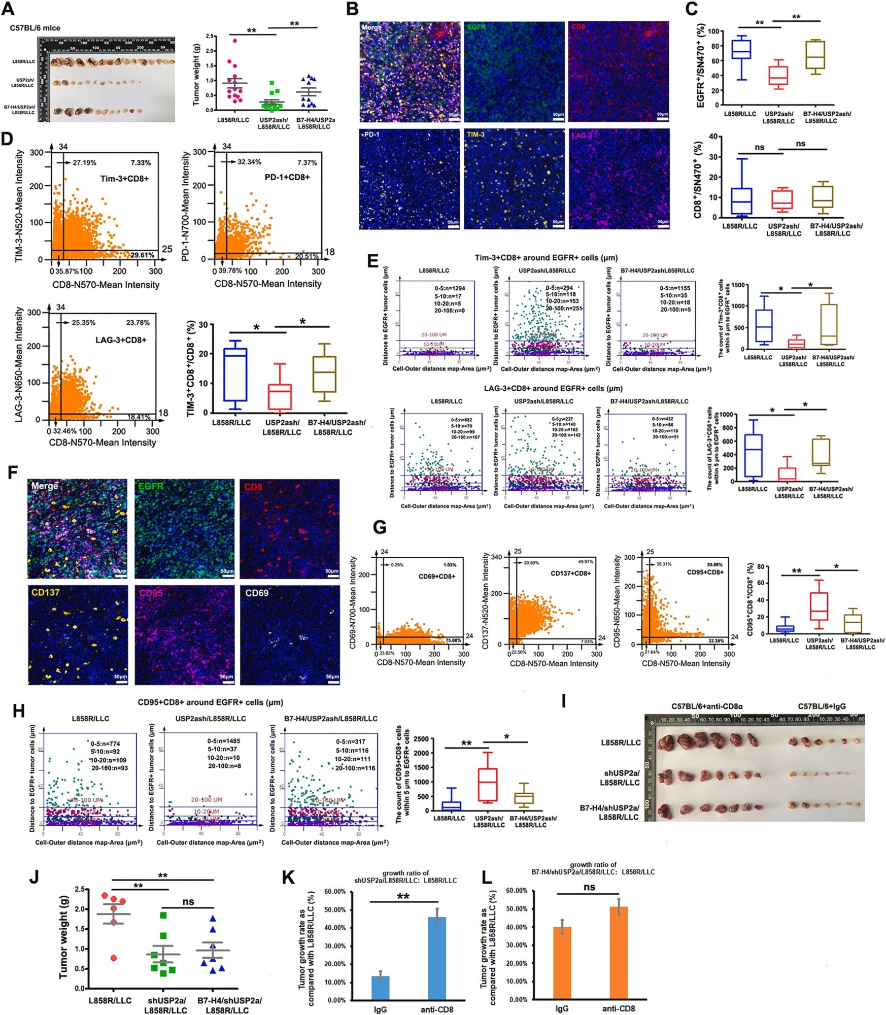 USP2a knockdown inhibited tumor growth in immunocompetent mice, while a B7-H4 overexpression resulted in tumor growth.