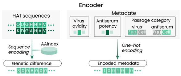 The selection of strains 6 to 9 months in advance of the season remains a key challenge in seasonal flu vaccine production. Machine learning (ML) bypasses labor-intensive hemagglutination inhibition (HI) assays, instead predicting antigenic properties from viral HA1 genetic sequences and metadata (Figure 3).