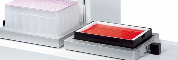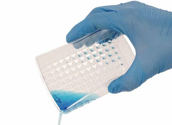 96 or 384 individual pyramidal indentations allow for maximum liquid recovery when using VIAFLO 96, VIAFLO 384 or other multiwell pipetting systems.