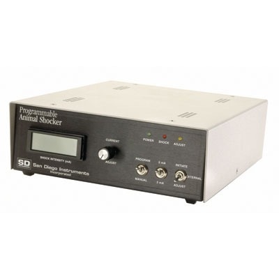 The SDI Programmable Animal Shocker system randomizes the delivery of shocks to prevent animals from detecting a pattern. This multi-functional, solid-state unit features eight unique outputs to deliver scrambled shocks. These outputs are intended to be connected to a grid floor with multiple rods.