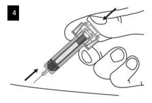 Push and hold the pen firmly against the skin. Listen for the 1st click which indicates that the injection has started.