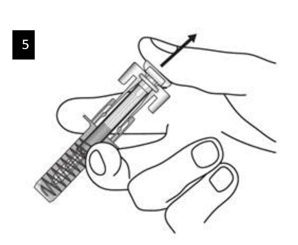 Do not touch or push the needle guard as you could get injured. Touching or pushing on the needle guard could cause a needlestick injury.