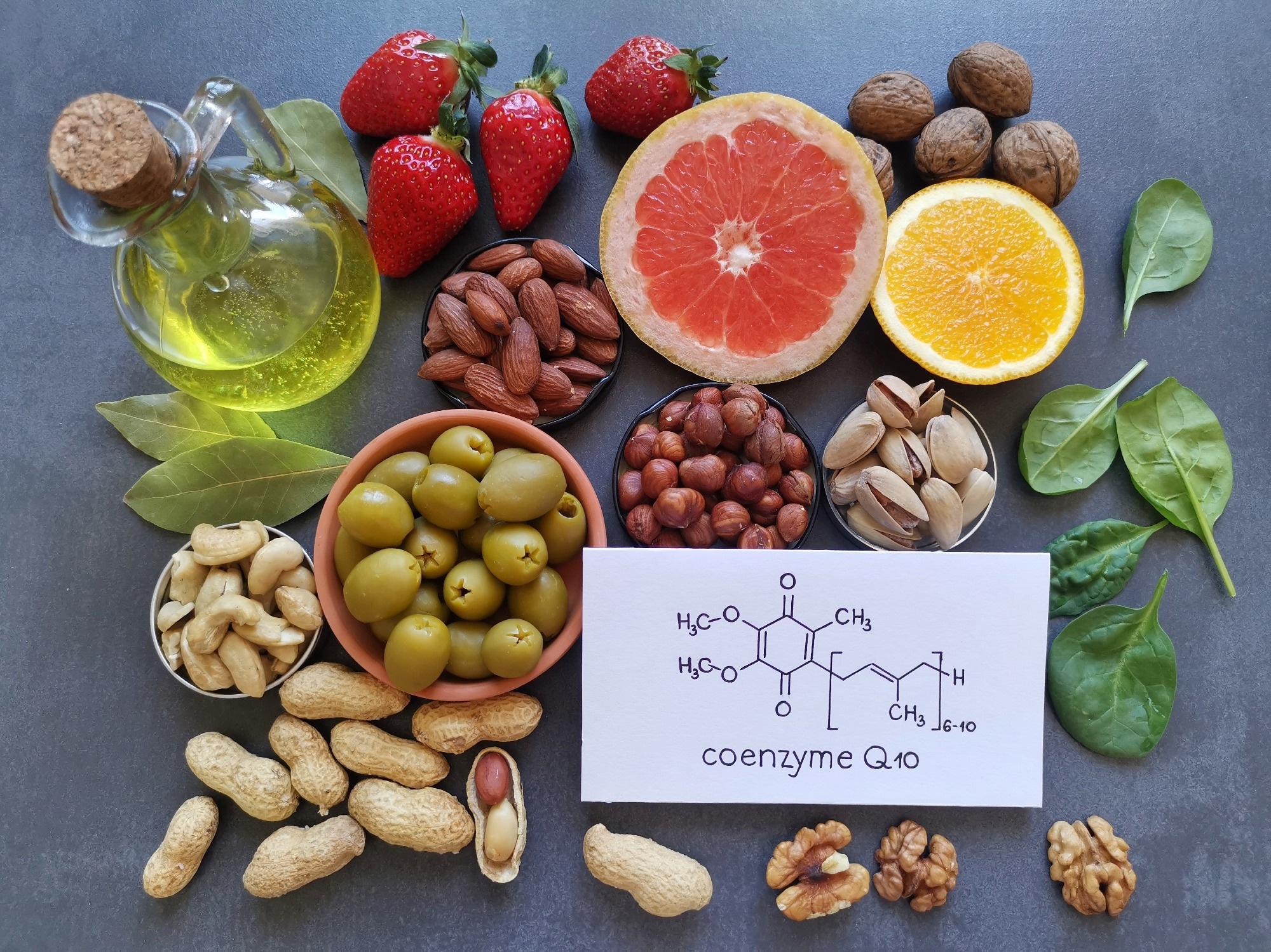 Among plant-derived matrices, byproducts from rapeseed, linseed, and sunflower oils exhibit high amounts of CoQ10, whereas walnut and hempseed oil have negligible CoQ10 content. CoQ10 can also be found in vegetables and nuts including parsley, spinach, avocado, peanut, and pistachio.4