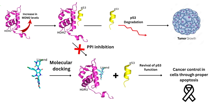 Fig 1. Graphical Overview of p53-MDM2 interaction. Image Credit: Image courtesy of Sarona Jacob Anderson et al., in partnership with ELRIG (UK) Ltd.
