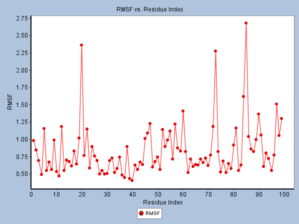 Fig 7. RMSF Analysis of Octanamide, N-(2-Mercaptoethyl)-1YCR Complex. Image Credit: Image courtesy of Sarona Jacob Anderson et al., in partnership with ELRIG (UK) Ltd.