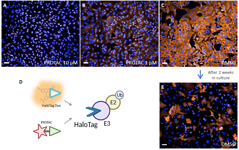 • PROTACs will be evaluated in endogenously tagged cell lines expressing the desired Halo-Tagged E3 using immunofluorescence.