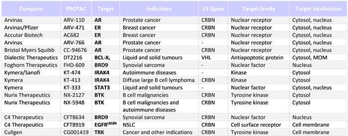 Table 1. PROTACs entered clinical trials by the end of 2021. Source: Ruffilli et al., 2022.