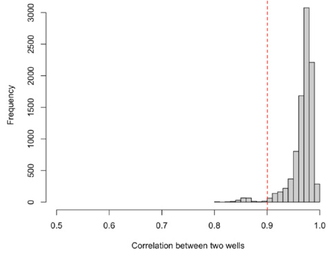 Conducting a plate uniformity test shows >90 % of correlation between ‘normal’ wells with a low SD