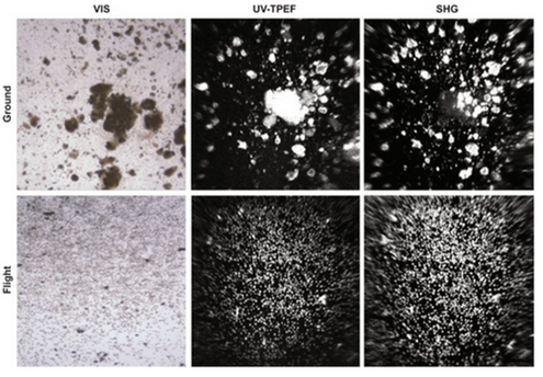 Microgravity: Cells self-assemble into 3D spheroids and organoids without scaffolds; gene expression patterns closer to in vivo tissue.