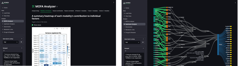 Scientists can statistically compare and visualize integrated results (Figure 8), for example, linking deconvolution-derived cell-type proportions or MOFA latent factors to clinical outcomes. This empowers scientists to ask deeper, context-driven questions that drive hypothesis generation and mechanistic understanding.