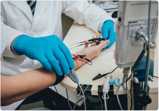 Medical examination using electromyography (EMG) Credit: Romaset/ Shutterstock.com