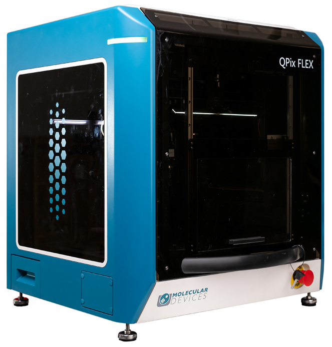 The QPix® FLEX™ system supports a diverse range of labware and SBS format plates, including 384-, 96-, 48-, 24-, and 6-well plates, and single and 12-well reservoirs and microwell plates.