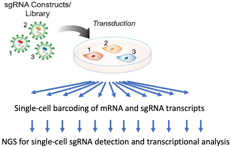 • The genetic perturbations are introduced by lentiviral transduction of sgRNA libraries in a pooled population.