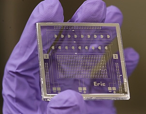 Eric Simone (pictured at right), a senior biomedical engineering major from the Cincinnati, Ohio, suburb of Anderson Township, fabricated and tested the chip in the lab of Jeff Tza-Huei Wang. Wang, an assistant professor in the Department of Mechanical Engineering, had already produced a biosensor chip with electrodes embedded in a straight line. Under Wang's supervision, Simone, 21, devised a biosensor chip with an innovative circular electrode design, which performed more effectively in certain bio-analytical applications.