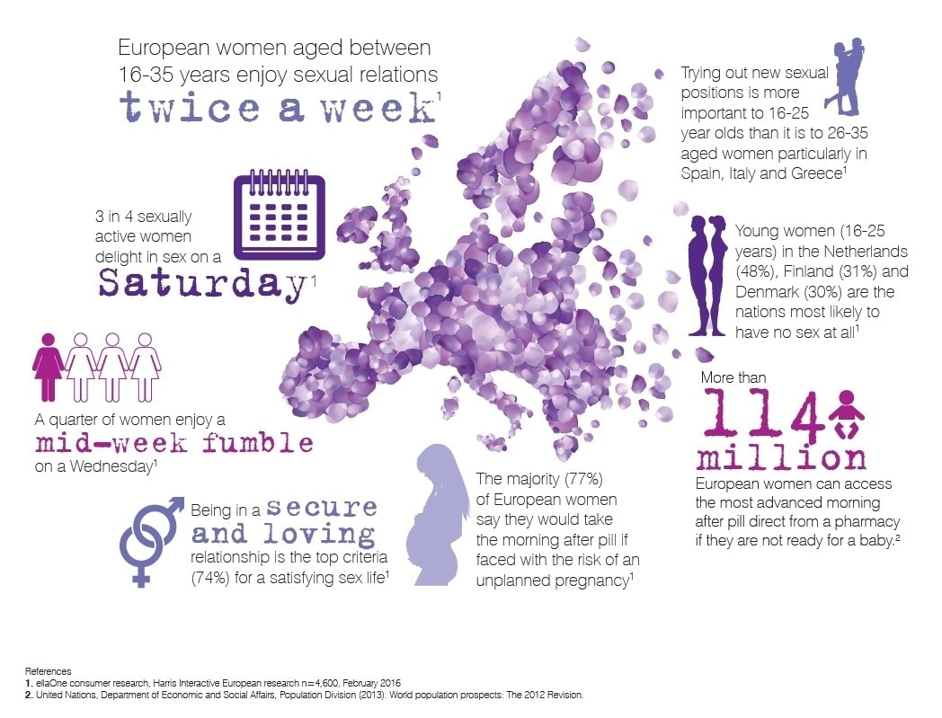 Almost 2 in 5 (38%) European women reported that regular sex is an important part of relationships and more than half (52%) feel that being spontaneous is a sign of a satisfying sex life. But with spontaneity often comes the risk of unplanned pregnancy and this may be behind the reason why across Europe, 45% of all pregnancies are unintended. “Healthcare professionals must recognise that sexual relations are not always planned and where unprotected sex has occurred, which is the case in 30% of sexual intercourses, the emergency contraceptive pill is a smart, positive, choice. It is critical women are able to access this treatment at any time without fear of judgement,” continues Frédérique Welgryn.