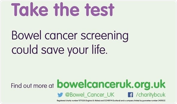 That’s why, during Bowel Cancer Awareness Month in April we are focusing on screening. As 2016 marks the ten year anniversary of the introduction of bowel cancer screening in England, we are urging people to spread the word among their family, friends and colleagues to take the test.