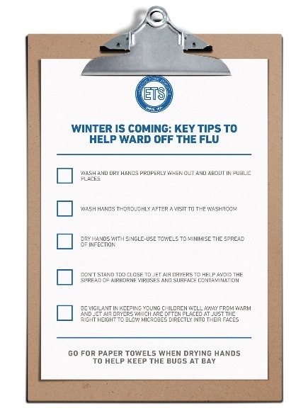 Proper hand drying after hand washing is a key step in keeping healthy, particularly during the autumn & winter months when coughs and colds abound. Follow these 5 key tips from the European Tissue Symposium (ETS) to help keep you and your family healthy this autumn & winter: