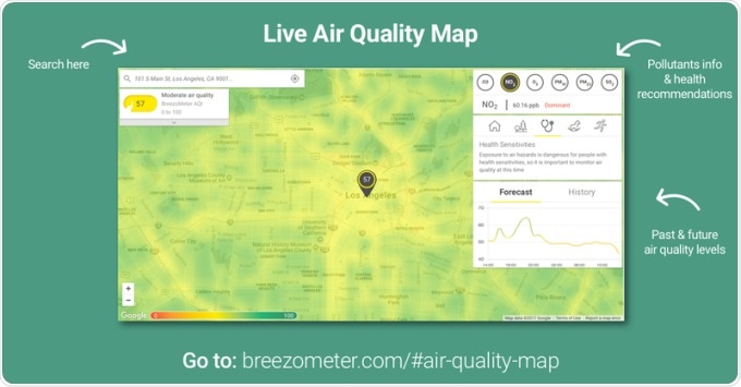 BreezoMeter, an air pollution data provider, today launches its interactive air quality map, an essential air monitor providing real time air pollution information, predictive hourly forecasts, and historical data based on its user’s address. The map, made possible by the company’s latest algorithm update, is highly visual and boasts a matchless accuracy down to the street level. Additional features include analyses of the dominant pollutants in the air, as well as health and fitness recommendations, such as when to avoid an outdoor workout or when those with health sensitivities may experience respiratory issues.