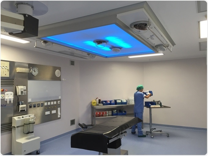 Embedded into the laminar flow ceilings, this sophisticated system replaces conventional surgical lamps to provide an open space within the working area, removing obstructions in the laminar flow ventilation process, which is one of the main drawbacks caused by the presence of traditional lamps. This is a main feature that contributes to reduce the prevalence of surgery infections and to provide an environment with low level of turbulence and minimum level of contamination.