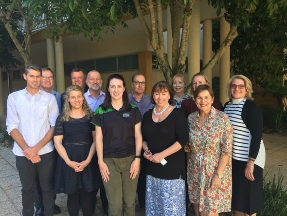 Front row (L-R) Dr Andrew Woods (University Sunshine Coast), Dr Heidi Webster (Child Development Service, Sunshine Coast University Hospital), Lauren (Ren) Sculthorpe (Institute for Urban Indigenous Health), Prof Sharon Dawe (Griffith University), Prof Mary Katsikitis (University Sunshine Coast), Dr Denise Hatzis (Griffith University) Back row (L-R) Dr Doug Shelton (Child Development Service, Gold Coast University Hospital), Kim Le Gros (Child Development Service, Gold Coast University Hospital) Dr Gerald Featherstone (Kummara Association), Dr Paul Harnett (University of Queensland), Assoc Prof Fran O'Callaghan (Griffith University), Assoc Prof Lucy Burns (National Drug and Alcohol Research Centre, University of NSW)