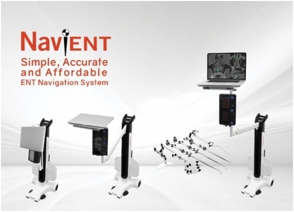 NaviENT, a computer-assisted surgical navigation system, is like a GPS for the surgeon to navigate inside the patient skull. It provides three-dimensional visualization and helps surgeons with finding their ways inside the patient sinuses and avoid critical structures such as the optic nerve and brain, while safely navigating their way to the diseased area.