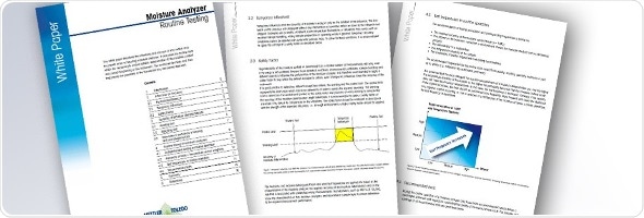 METTLER TOLEDO is pleased to present a new white paper entitled “Moisture Analyzer Routine Testing.” This informative 6-part paper discusses the routine tests necessary to ensure reliable moisture content determination using a halogen moisture analyzer. The recommended tests and testing frequencies are presented in a framework that takes into account the amount of risk of the process in which the moisture analysis is being performed.