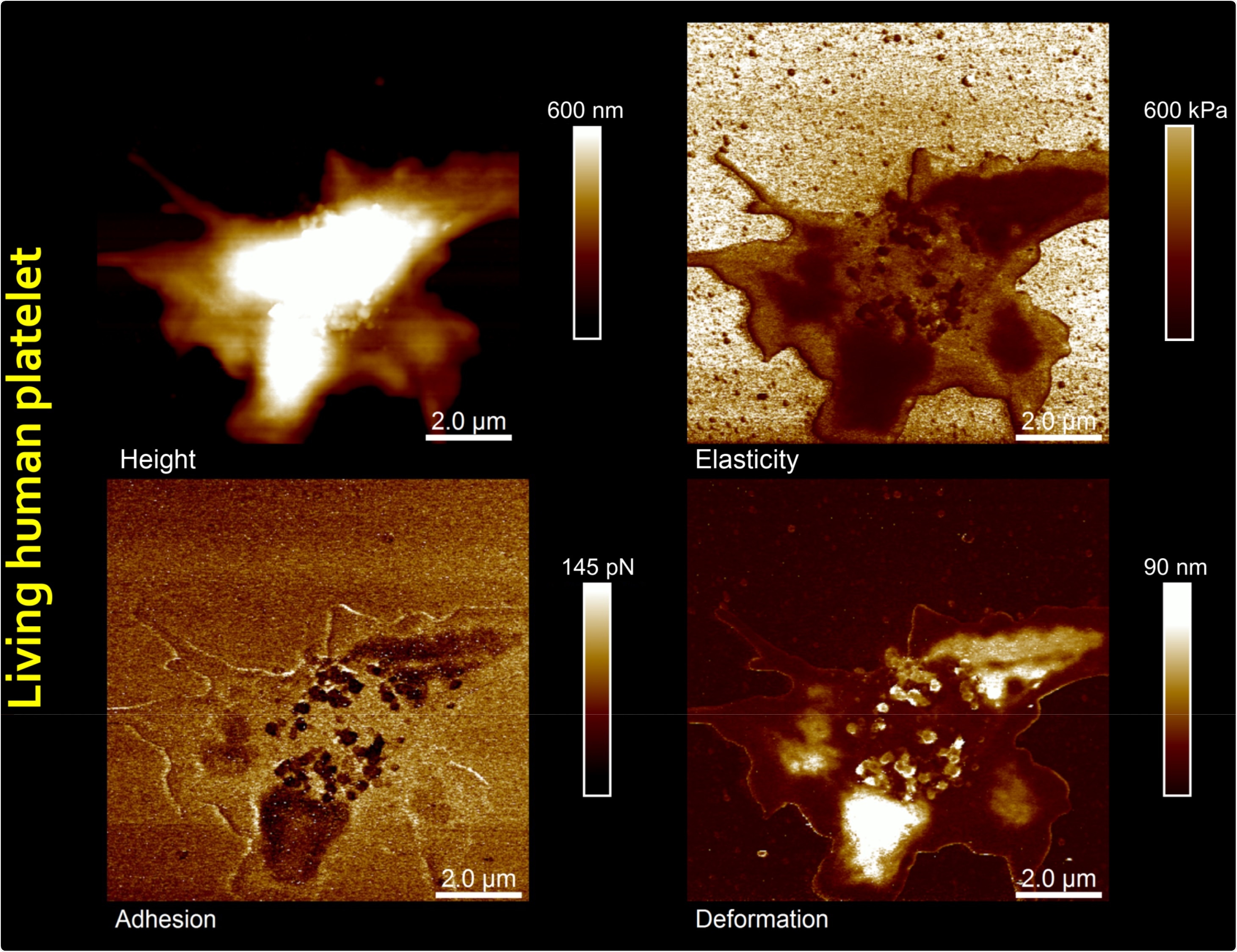 We look for the first step of platelet cancer cell interaction, but there are several further steps. What I now try to do is to use PeakForce QNM to see a pattern of biomechanical changes of the cancer cell after interaction with platelets.
