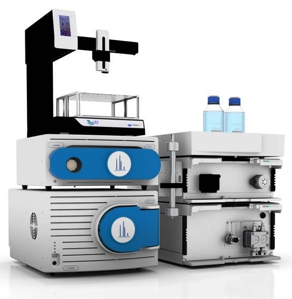 The KNAUER 4000 MiD covers a mass range of 50 to 800 m/z. Due to the integrated vacuum system, the 4000 MiDhas a very small footprint and can be operated in laboratories with limited space. Together with the MiDas automated sampling unit, the 4000 MiD enables high-throughput preparative HPLC. The AZURA® prep LC for mass directed fractionation is controled with ClarityChrom®, an easy-to-use chromatography data system for workstations.