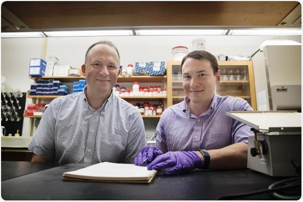 Jason Papin, left, and Greg Medlock “took a step back” and figured out a new way to identify how different bacteria interact within the microbiome. (Photo by Dan Addison, University Communications)