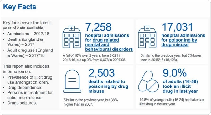 The report adds that there is a 32 percent rise in admissions related to poisoning associated with drug use among those who are aged over 55 years. This rise was seen over the last six years says the NHS Digital. Drug related health problems rose from 5,679 in 2005/06 to 19,529 in 2017/18 says the latest figures. This is a 243 percent rise. The rise in number of people who underwent residential treatment for drug related causes were 1,797 in 2005/06 to 4,455 in 2017/18 -  a rise of 148 percent.