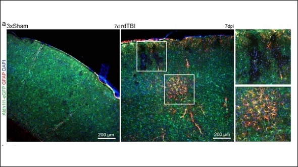 Stefanie Robel, Oleksii Shandra and colleagues induced mild traumatic brain injury in mice to mimic blows to the head that result in human concussions. A unique population of astrocytes responded to these injuries and the researchers observed spontaneous recurrent seizures in some mice within one month. These results highlight the role of astrocytes in the development of epilepsy following the most common type of traumatic brain injury in humans.