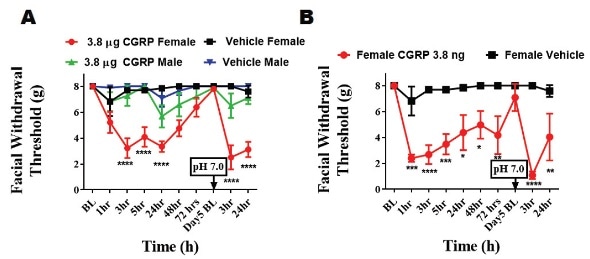 Low doses of a peptide known for decades to be involved in migraine trigger pain responses in female but not male rodents, according to a new research published in JNeurosci. This finding may help explain why migraine is more common in women than men.