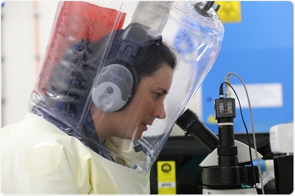 A CSIRO scientist at the Australian Animal Health Laboratory (AAHL)