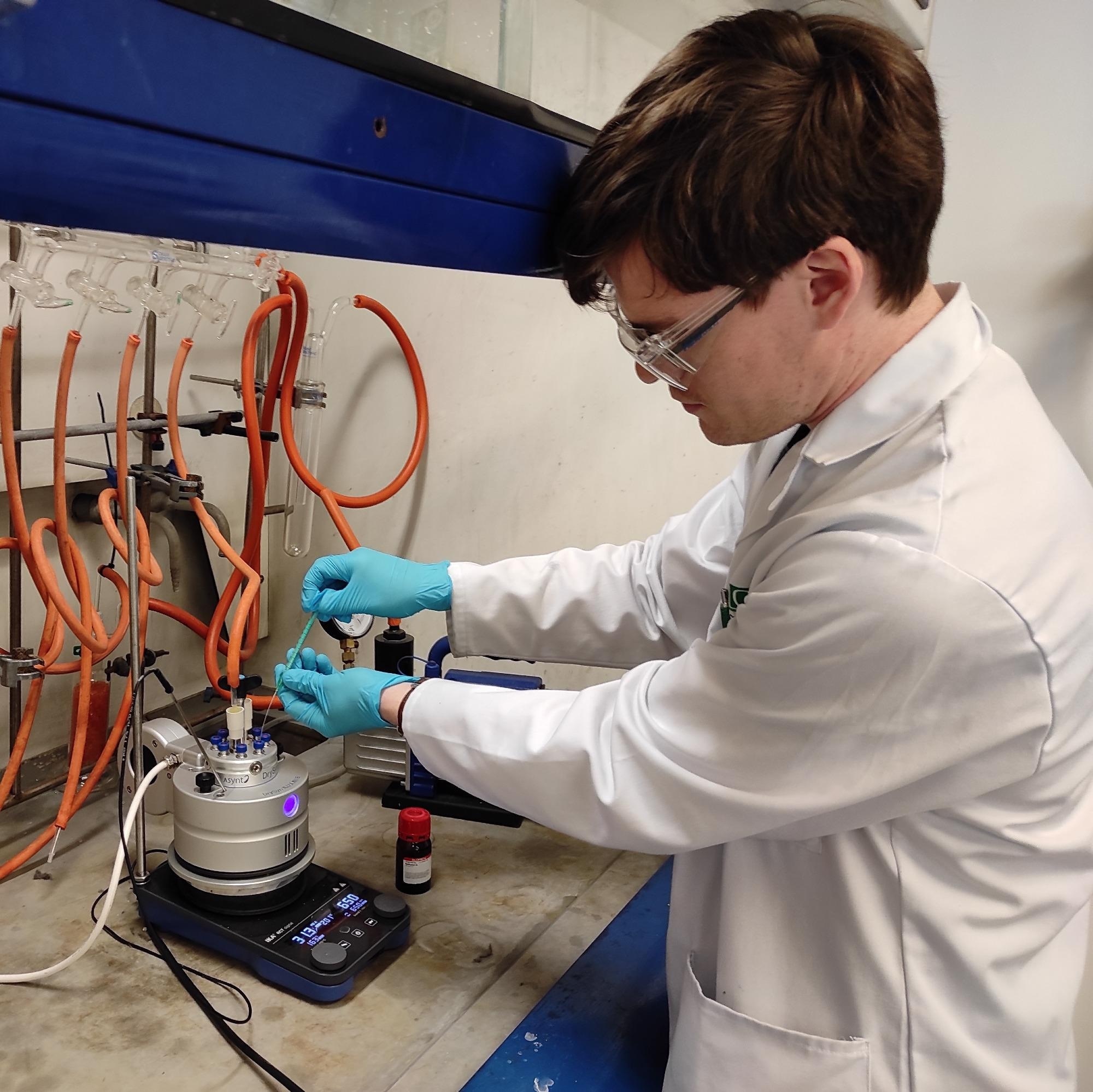 Ross Goodyear, R&D chemist at Liverpool ChiroChem with the Illumin8 Parallel Photoreactor