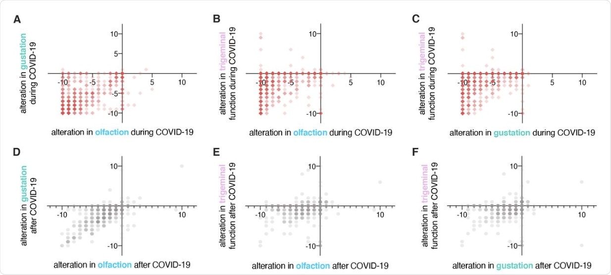 The researchers found a moderate to strong correlation to exist between olfactory and gustatory changes which were reported by the participants, as compared to trigeminal changes. This may be due to the similarity of the pathophysiological pathways of these senses.