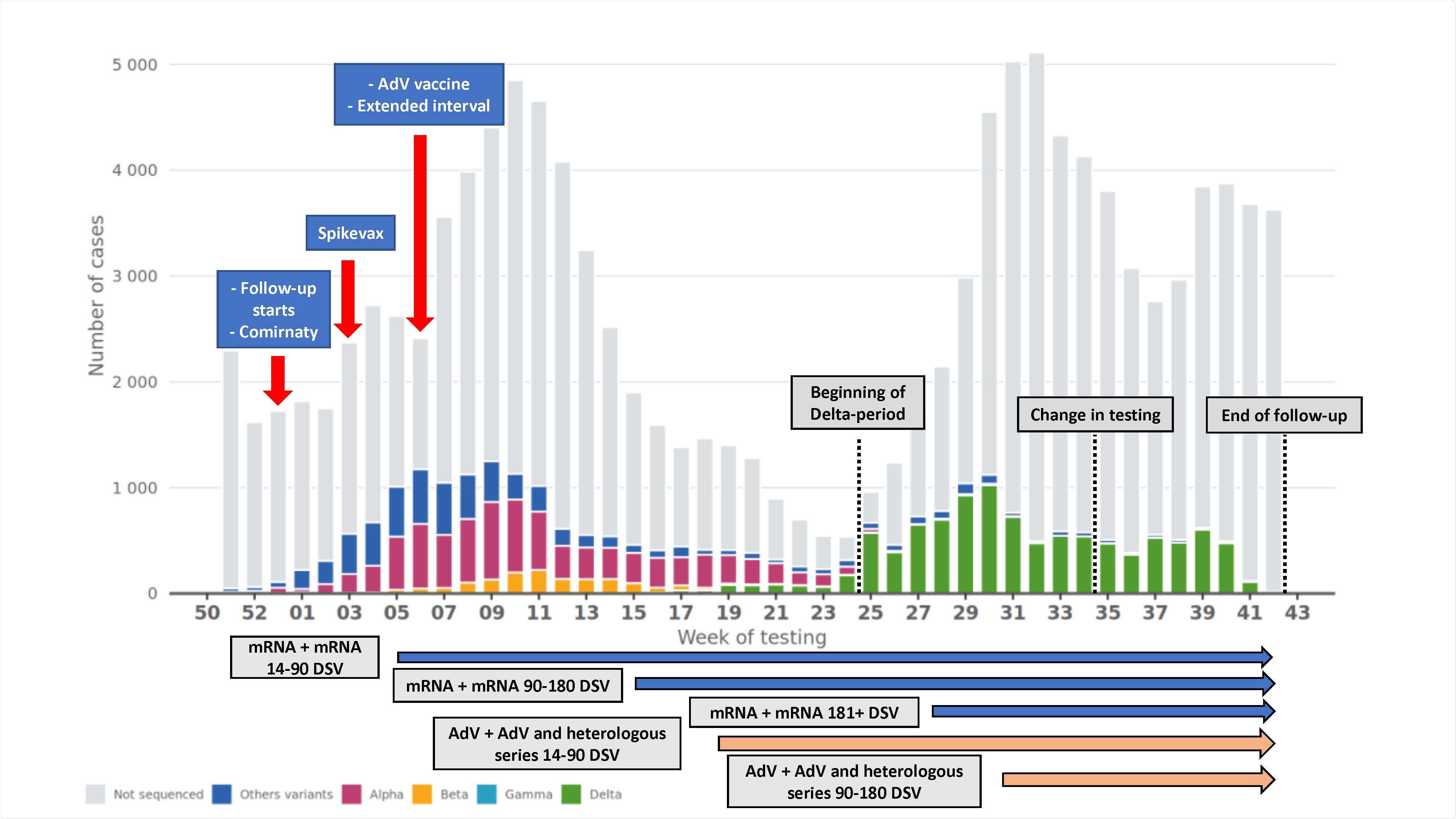 HCWs within the age range of 16-69 years were vaccinated with mRNA vaccines – Comirnaty (BioNTech, Pfizer) and Spikevax (Moderna) – at the standard 3-4 week dosing interval. However, in the case of the AdV vaccine, Vaxzevria (Oxford, AstraZeneca), the dosing interval was prolonged to 12 weeks.